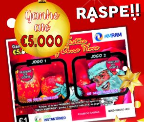 Desde esta segunda-feira que estão disponíveis, para venda, os novos bilhetes do Jogo Instantâneo com uma nova imagem, alusiva ao Natal. São mais 250.000 de bilhetes, que se estão à venda pelo preço de 1,00 euro cada junto dos habituais Agentes Vendedores do “Raspa”. Os prémios vão desde os Bilhetes Grátis até aos 5.000,00 €.
